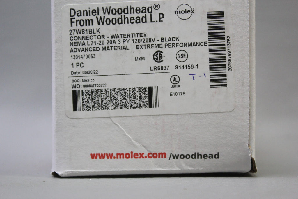 NEW WOODHEAD/MOLEX WATERTITE CONNECTOR 27W81BLK