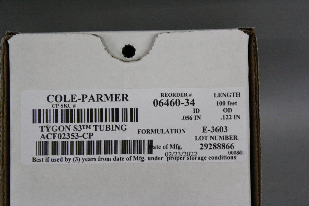 100ft NEW COLE PARMER TYGON S3 PUMP TUBING ID=.056" OD=.122" 06460-34 1.42mm ID