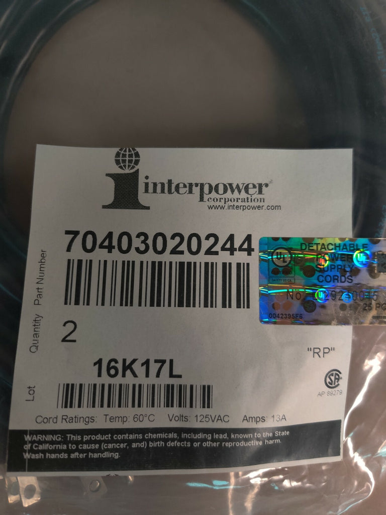 2 Interpower 70403020244 Black Power Cables / Cords New