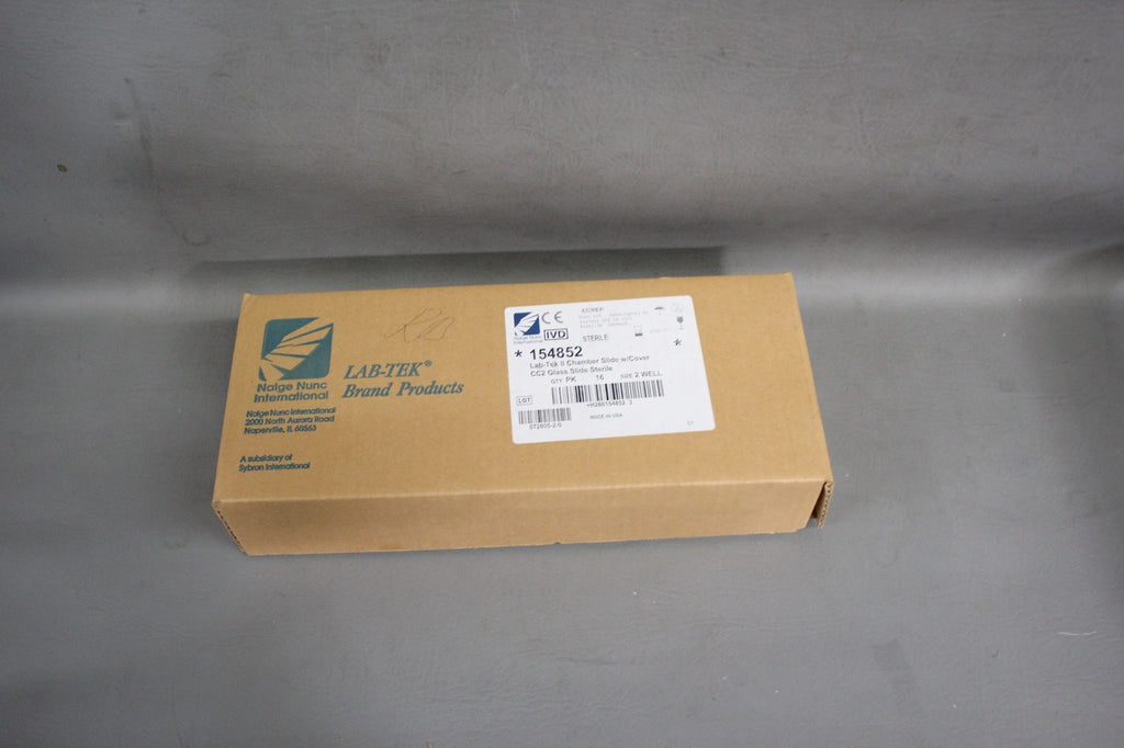 BOX OF 16 NEW NALGE NUNC LAB-TEK II 2 WELL CHAMBER SLIDE W/COVER 154852