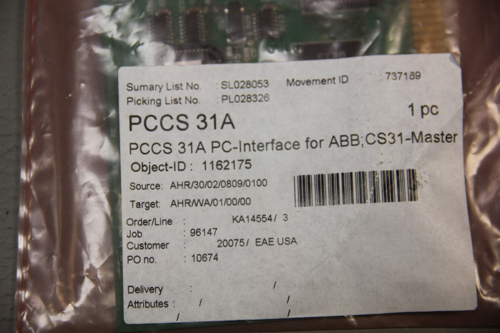EAE PCCS 31A ABB PROCONTIC AUTOMATION SYSTEM PC INTERFACE CARD 1162175