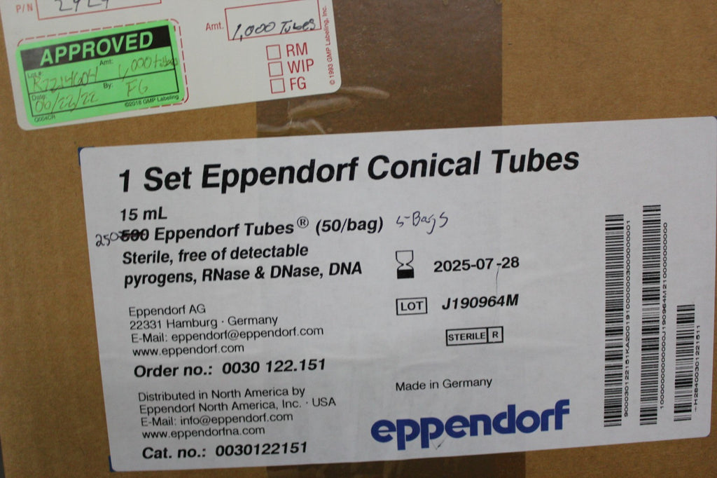 NEW BOX OF 250 15mL EPPENDORF TUBES 0030122151