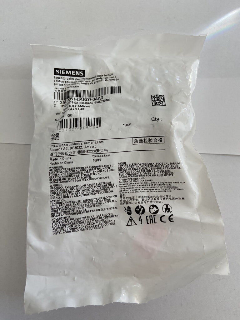 Siemens 3SU1051-0AB00-0AA0 Illuminated Pushbutton, 22mm, Round, Metal, Amber