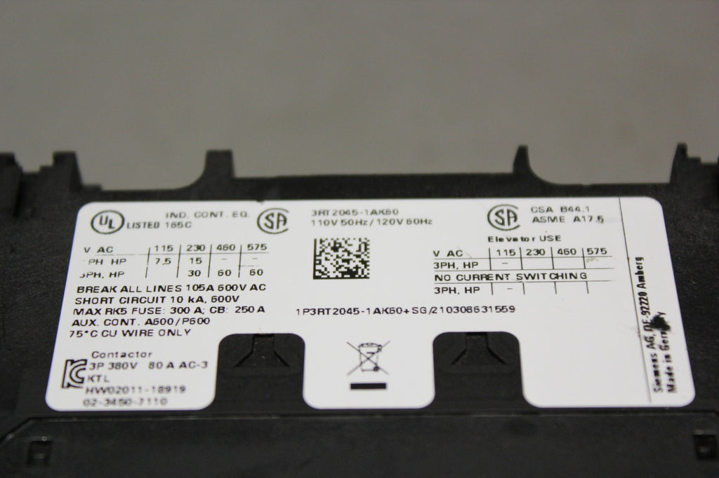 SIEMENS CONTACTOR 3RT2045-1AK60