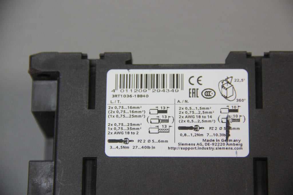 SIEMENS POWER CONTACTOR 3RT1036-1BB40