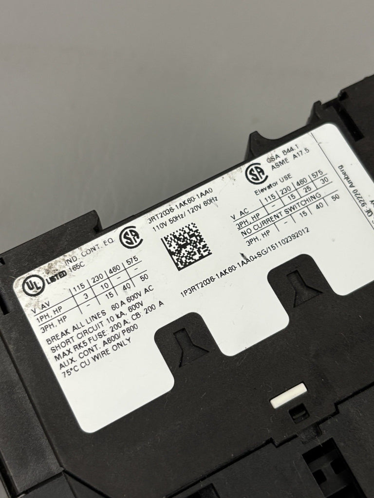 UNUSED SIEMENS POWER CONTACTOR 3RT2036-1AK60-1AA0